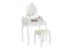 Detský toaletný stolík Lilly v bielej farbe s bezpečným zrkadlom a taburetkou premení detskú izbu na malé kráľovstvo.