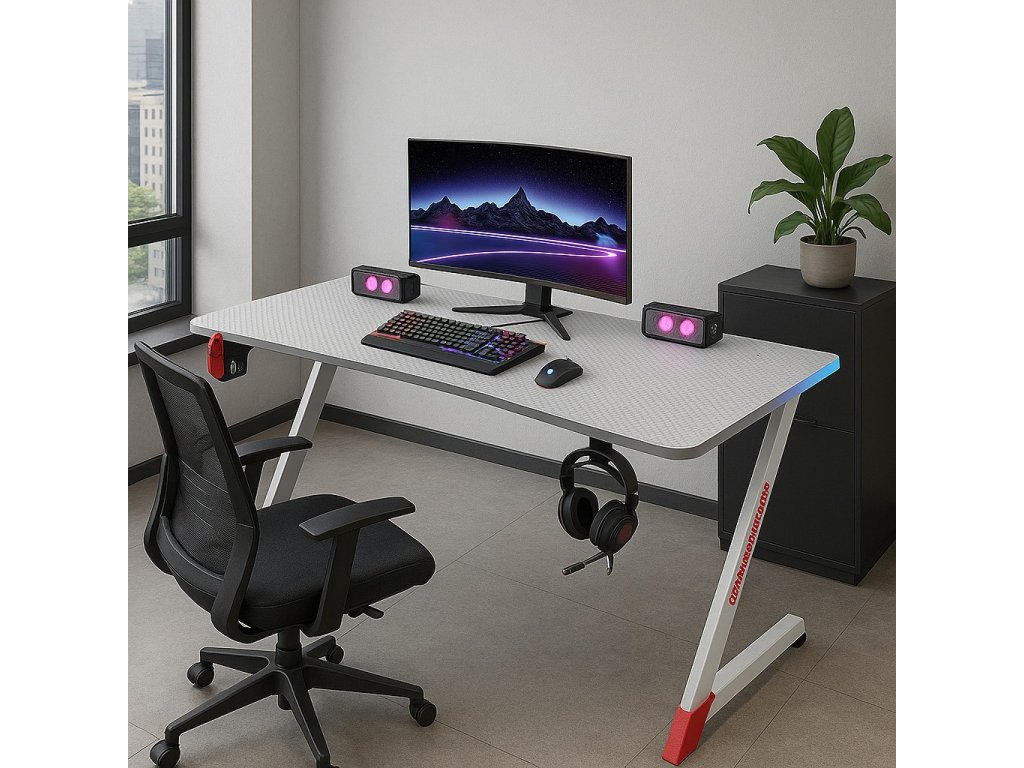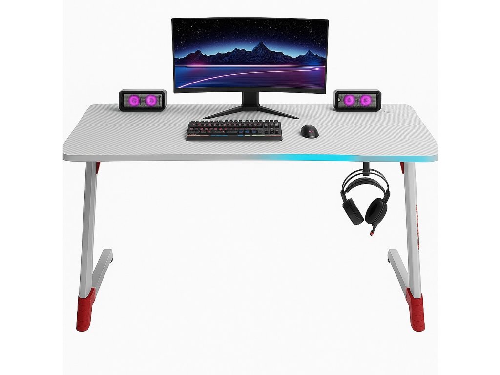 🖥️ Herný stôl / Počítačový stôl pre hráča – Moderný LED dizajn 140 cm, biely