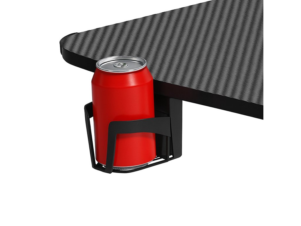 ✔️ Doplnky vždy poruke – držiak na slúchadlá a pohár udržiavajú poriadok a uvoľňujú miesto na doske.