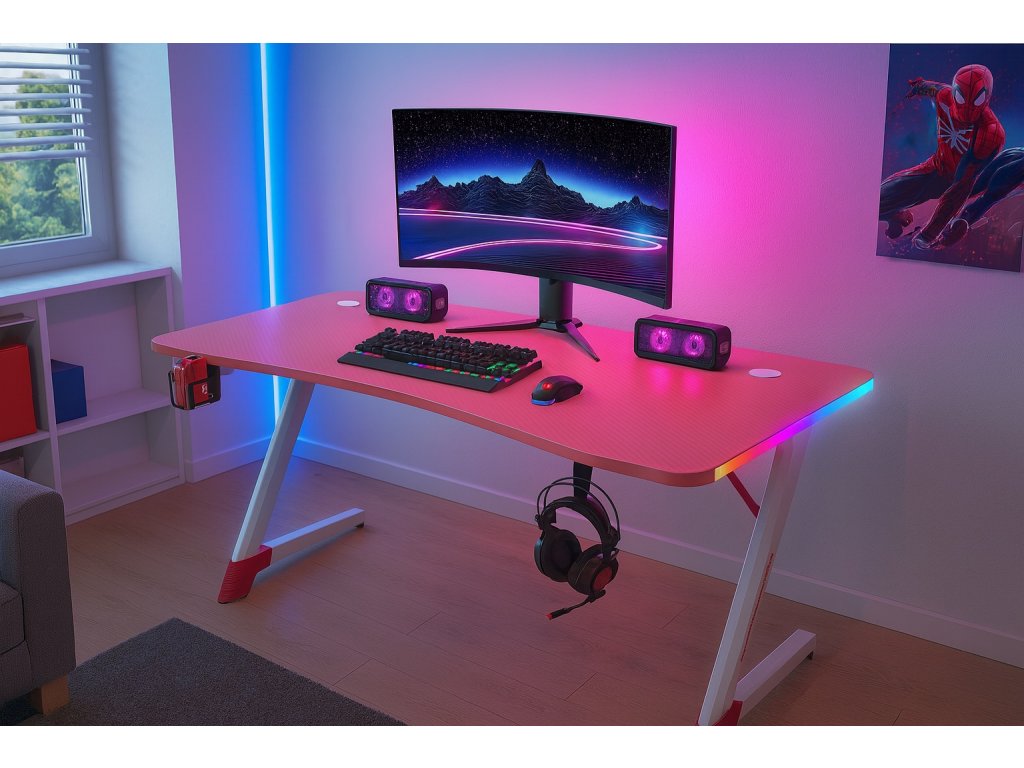 🖥️ Herný stôl / Počítačový stôl pre hráča – Moderný LED dizajn 120 cm, ružový