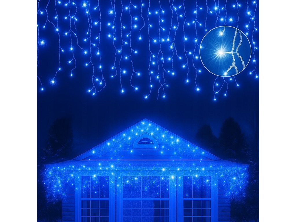 ➡️Naša svetelná záclona – cencúle 300 LED v modrej farbe je ideálna dekorácia pre milovníkov elegantného, chladného svetla.