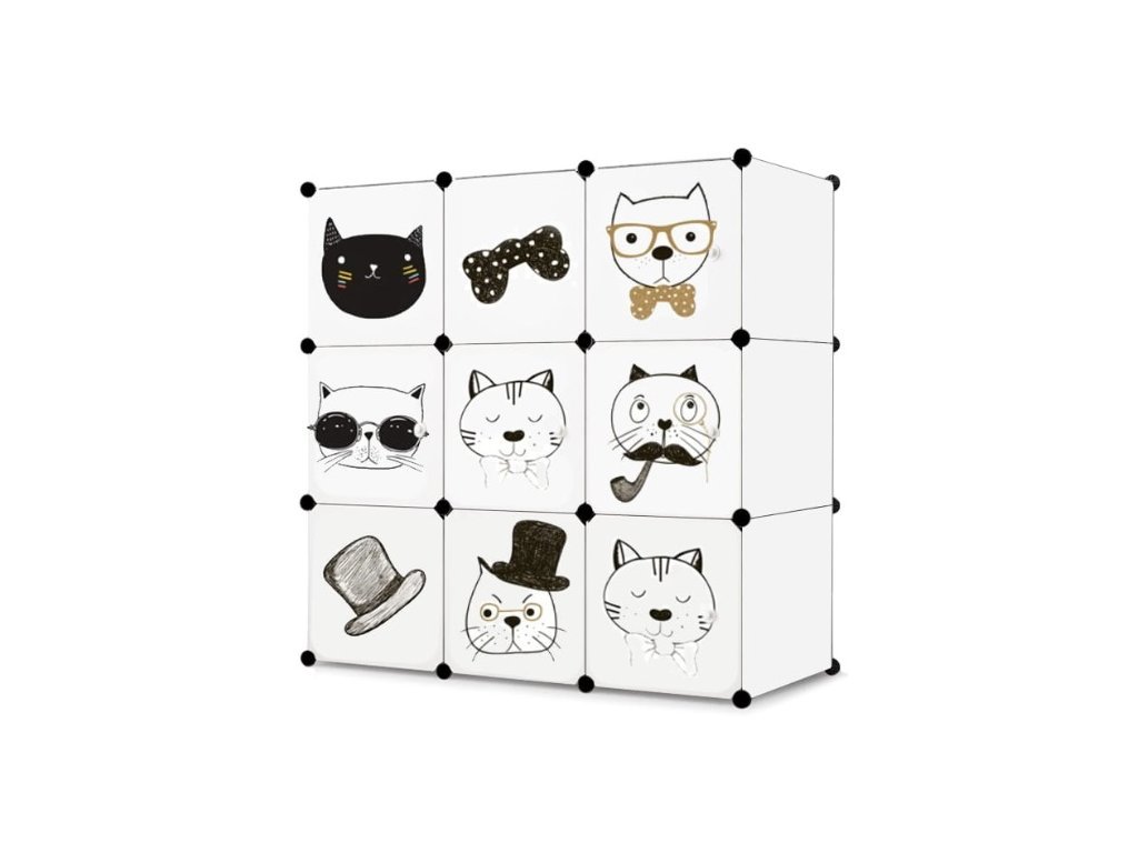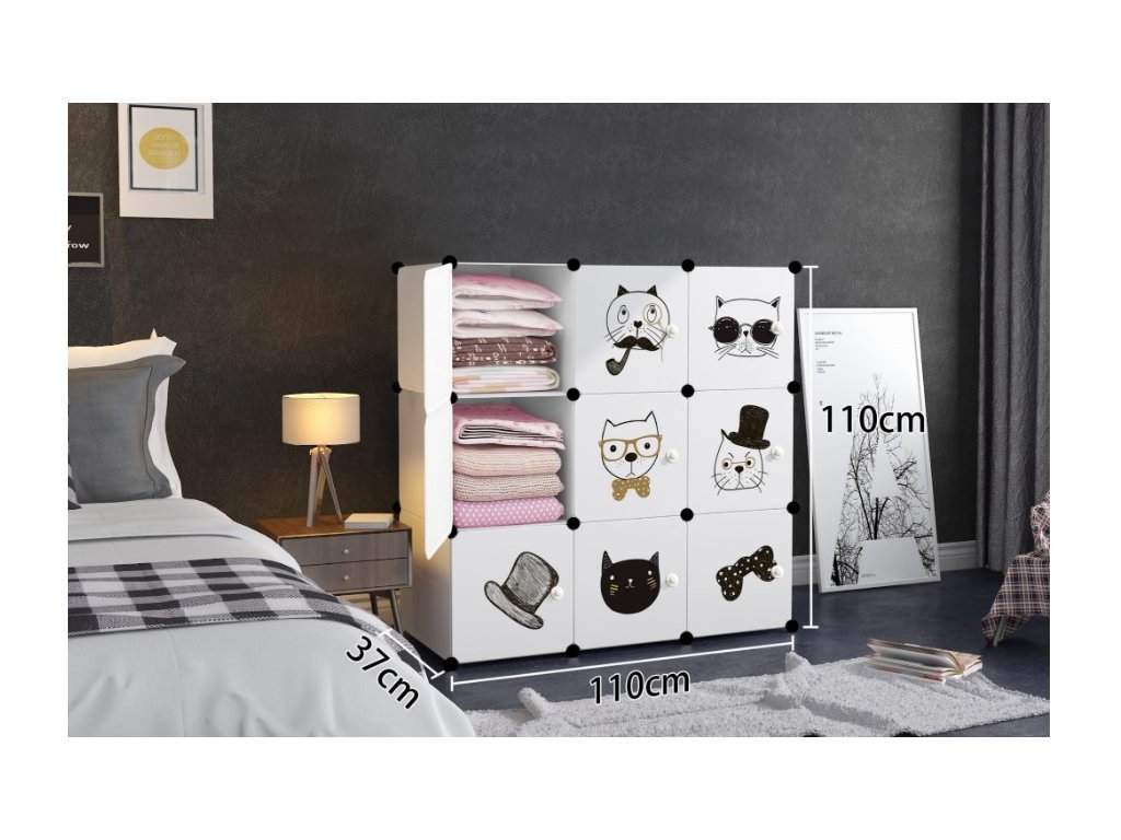 Modulárna skrinka je skvelým riešením pre hračky, topánky, oblečenie a iné detské doplnky. Skladá sa z 9 modulov, z ktorých každý má dvierka s rozprávkovou potlačou. Každý modul je možné usporiadať podľa vašich potrieb v ľubovoľnej konfigurácii vo vzťahu k susednému modulu.