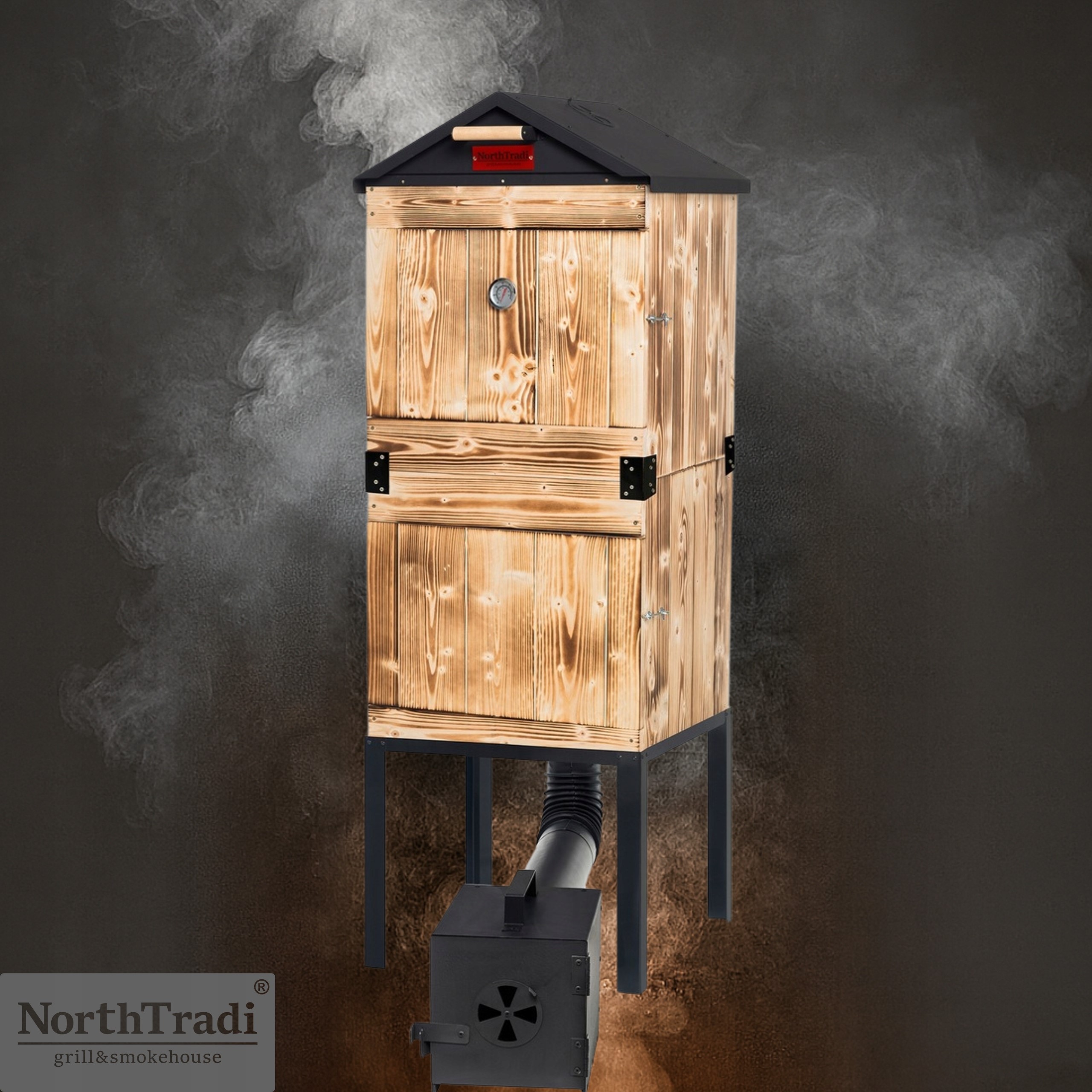 🔥🌲 XXL drevená záhradná udiarnička NorthTradi – výkon, kapacita a profesionálne výsledky