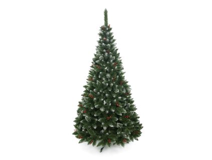 Trblietavá borovica s červenou jarabinou – luxusný stromček, ktorý očarí hneď na prvý pohľad. Husté ihličie, lesk kryštálov a sviatočný kontrast bez nutnosti zdobenia.