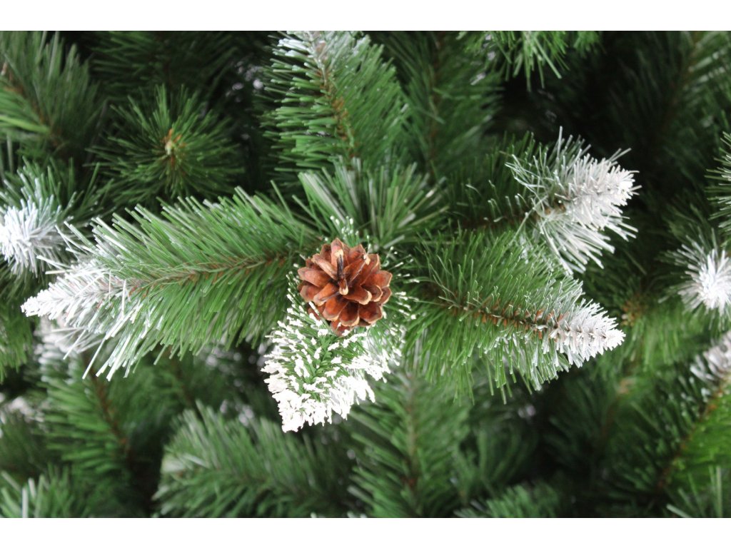 Každý stromček je zdobený ručne upravenými šiškami, ktoré sú natrvalo pripevnené na konárikoch – výsledkom je rozprávkový vzhľad bez potreby ďalšieho zdobenia. Vďaka pevne pripevneným hlavným vetvám je rozkladanie stromčeka jednoduché a rýchle.